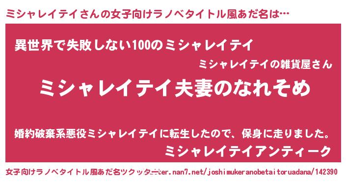 | ヒーロー風カッコイイあだ名 | 『正義の使者ミシャレイテイ』 |