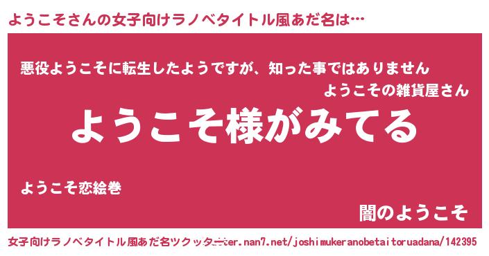 | 男性向けラノベタイトル風あだ名 | 『ようこその嫁は女の子じゃないと思った?』 |