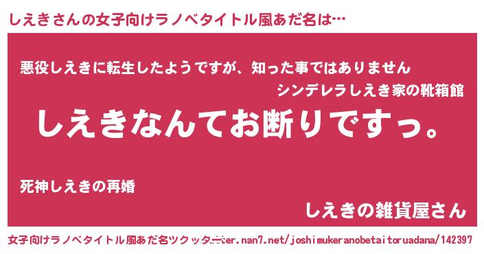 | 意味不明あだ名 | 『自称しえき』『住所不定無職しえき(89歳)』 |