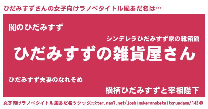 | 男性向けラノベタイトル風あだ名 | 『やはりひだみすずの青春ラブコメはまちがっている 』 |