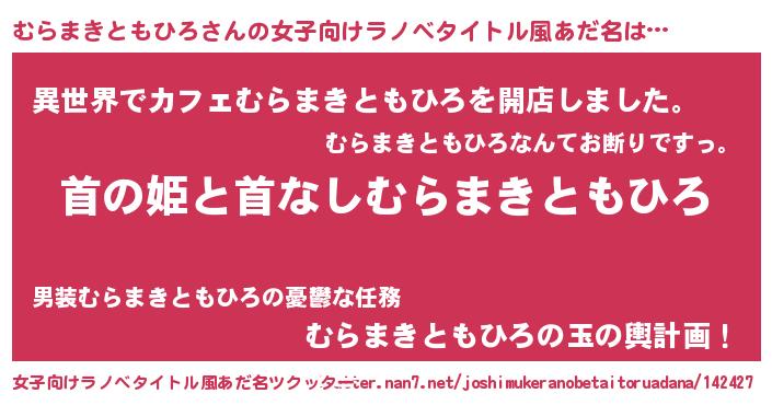 男性向けラノベタイトル風あだ名 | 『はたらくむらまきともひろさま!』 |