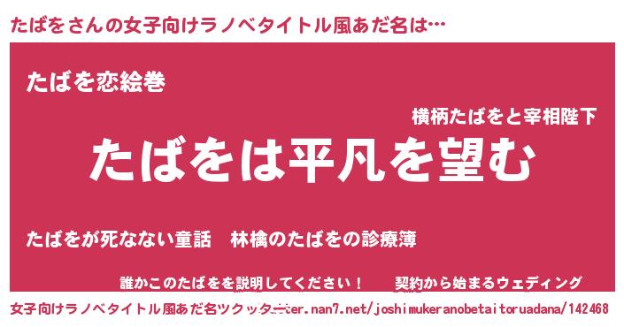 | 胡散臭い通販商品みたいなあだ名 | 『信頼と実績のサプリメント…その名も「たばを」』 |