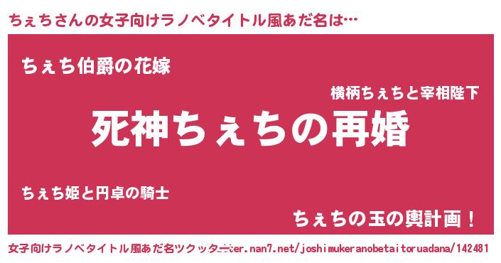 | 男性向けラノベタイトル風あだ名 | 『ノーゲーム・ノーチェチ』 |