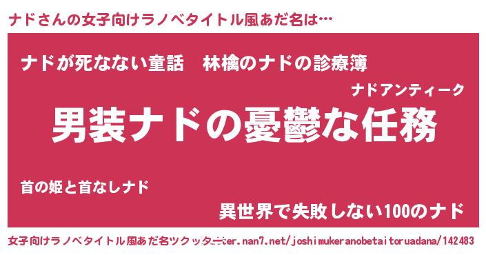 | 胡散臭い通販商品みたいなあだ名 | 『あなたにだけ特別に提供する世界で10本だけ現存している希少なブランデー…その名も「ナド」』 |