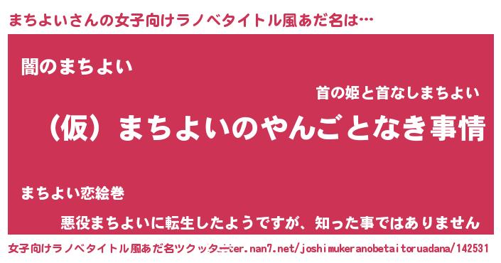 | 男性向けラノベタイトル風あだ名 | 『まちよいの憂鬱』 |