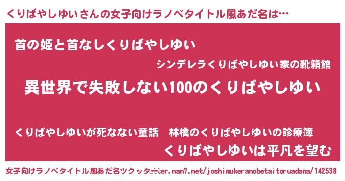 | 男性向けラノベタイトル風あだ名 | 『くりばやしゆいという概念が存在しない退屈な世界 』 |