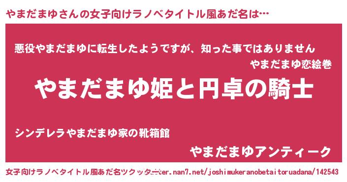 | 胡散臭い通販商品みたいなあだ名 | 『モテモテ間違いなしブレスレット…その名も「やまだまゆ」』 |