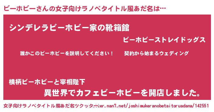 | ヘコむあだ名 | 『ビーふぇ~』『ビーホビー(遠い目)』 |