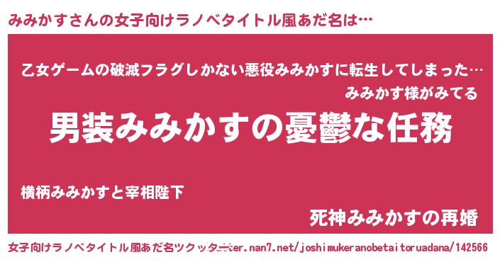 | 男性向けラノベタイトル風あだ名 | 『うちのみみかすが世界を掌握している!』 |
