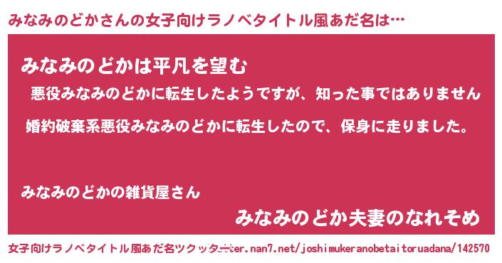 | 胡散臭い通販商品みたいなあだ名 | 『信頼と実績のサプリメント…その名も「みなみのどか」』 |