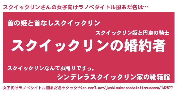 | 胡散臭い通販商品みたいなあだ名 | 『運命の人と巡り会える高級そうな壺…その名も「スクイックリン」』 |