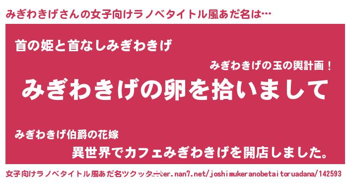 | 男性向けラノベタイトル風あだ名 | 『ダンジョンにみぎわきげを求めるのは間違っているだろうか』 |