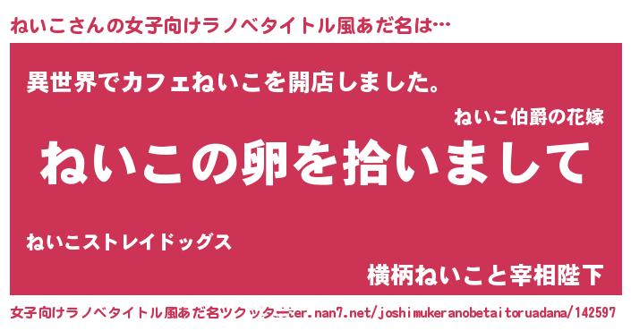 | 男性向けラノベタイトル風あだ名 | 『ダンジョンにねいこを求めるのは間違っているだろうか』 |