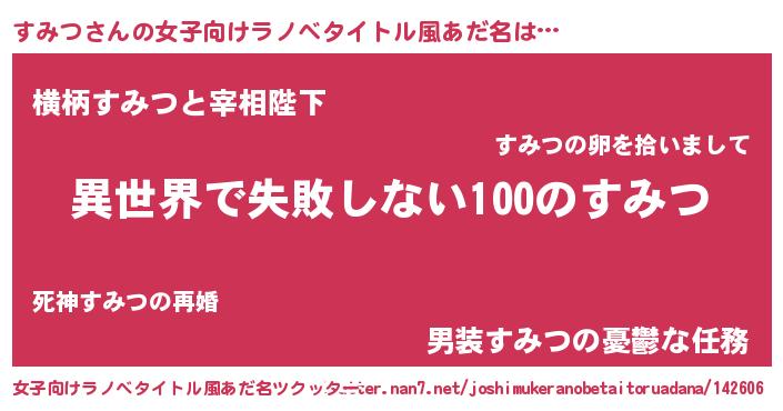 | 男性向けラノベタイトル風あだ名 | 『すみつという概念が存在しない退屈な世界 』 |