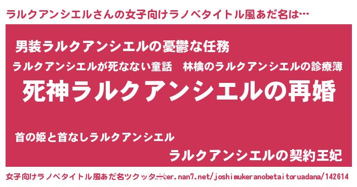 | 男性向けラノベタイトル風あだ名 | 『ノーゲーム・ノーラルクアンシエル』 |