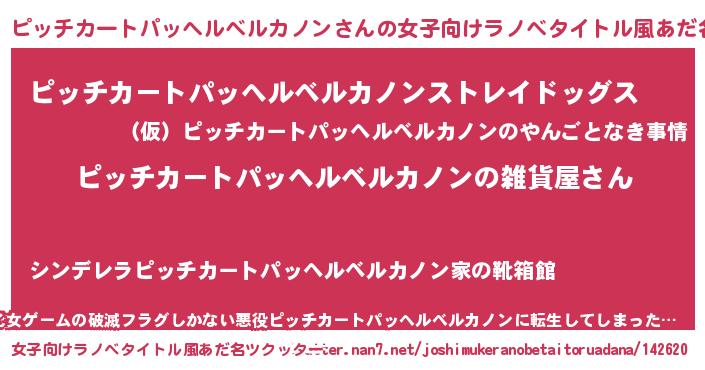 | 男性向けラノベタイトル風あだ名 | 『やはりピッチカートパッヘルベルカノンの青春ラブコメはまちがっている 』 |