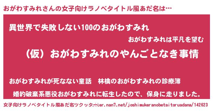 | 胡散臭い通販商品みたいなあだ名 | 『必ず成功するブレスレット…その名も「おがわすみれ」』 |
