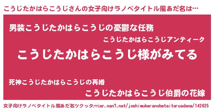 | 男性向けラノベタイトル風あだ名 | 『こうじたかはらこうじの嫁は女の子じゃないと思った?』 |