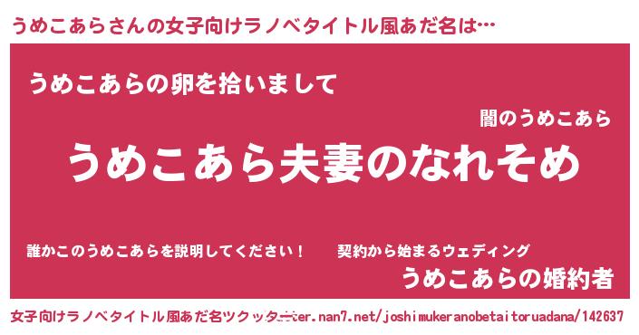 | ヒーロー風カッコイイあだ名 | 『正義の使者うめこあら』『幻影騎士ウメ』 |