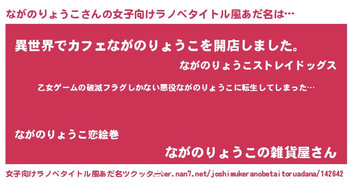 | 男性向けラノベタイトル風あだ名 | 『魔弾の王とながのりょうこ』 |