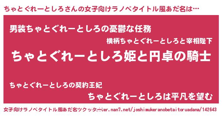 | 男性向けラノベタイトル風あだ名 | 『ちゃとぐれーとしろの憂鬱』 |