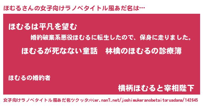 | 男性向けラノベタイトル風あだ名 | 『魔弾の王とほむる』『ホムルスレイヤー』 |