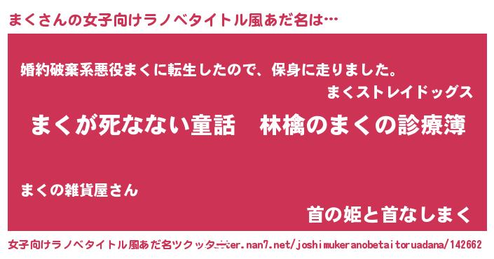 | 意味不明あだ名 | 『住所不定無職まく(8歳)』『自称まく』 |