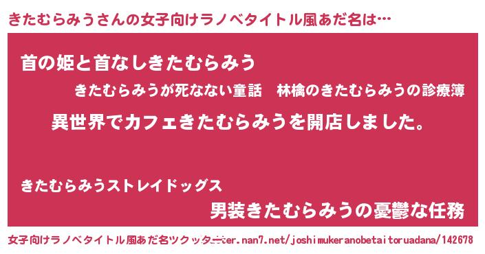 | 男性向けラノベタイトル風あだ名 | 『誰もが恐れるあのきたむらみうが、ぼくの専属メイドになるようです。』 |