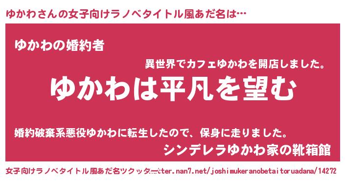 | 男性向けラノベタイトル風あだ名 | 『ダンジョンにゆかわを求めるのは間違っているだろうか』 |