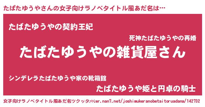 | 男性向けラノベタイトル風あだ名 | 『やはりたばたゆうやの青春ラブコメはまちがっている 』 |