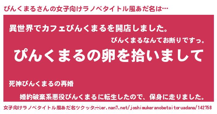 | 意味不明あだ名 | 『とにかく怪しいぴんくまる』 |