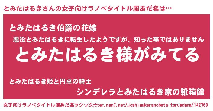 | 男性向けラノベタイトル風あだ名 | 『とみたはるきの嫁は女の子じゃないと思った?』 |