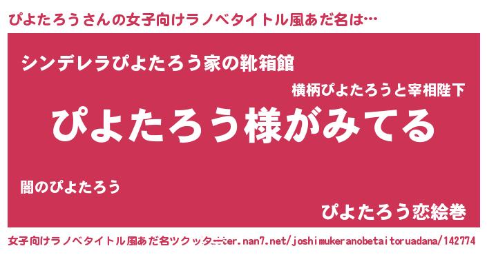 | 男性向けラノベタイトル風あだ名 | 『ぴよたろうの嫁は女の子じゃないと思った?』 |