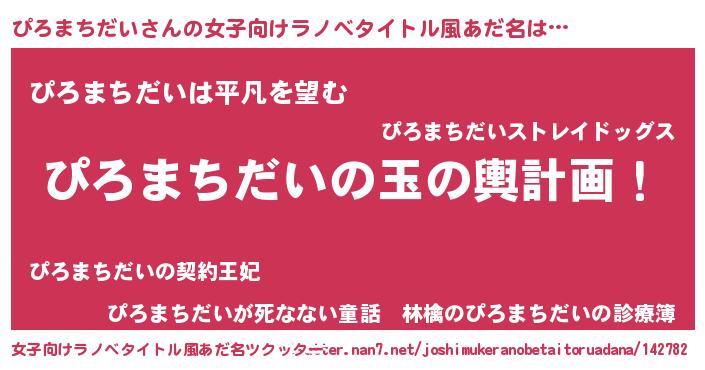 | 萌えアニメ | 主人公(ぴろまちだい)のあだ名『 ぴろ殿』 |