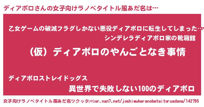 | 男性向けラノベタイトル風あだ名 | 『ディアボロの憂鬱』『緋弾のディアボロ』 |