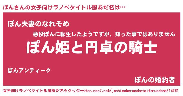 | 男性向けラノベタイトル風あだ名 | 『ぽんの憂鬱』『魔法科高校のぽん』 |
