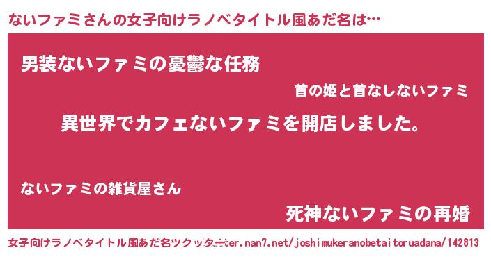 | 意味不明あだ名 | 『永久保存ないファミ』 |