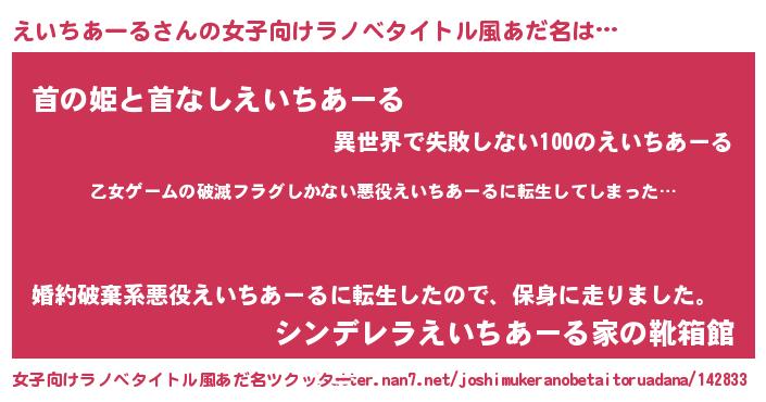 | 意味不明あだ名 | 『住所不定無職えいちあーる(13歳)』 |