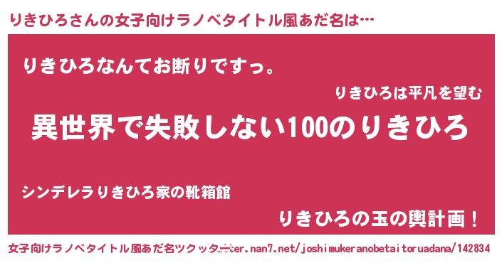 | 男性向けラノベタイトル風あだ名 | 『りきひろという概念が存在しない退屈な世界 』 |