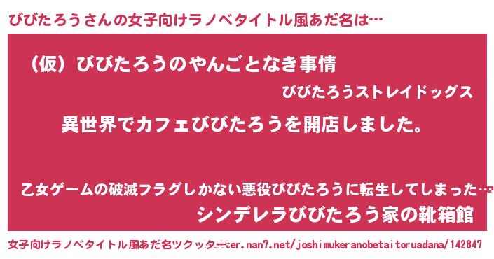 | 胡散臭い通販商品みたいなあだ名 | 『前代未聞の健康食品…その名も「びびたろう」』 |