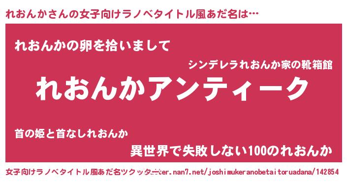 | 意味不明あだ名 | 『自称れおんか』『永久保存れおんか』 |