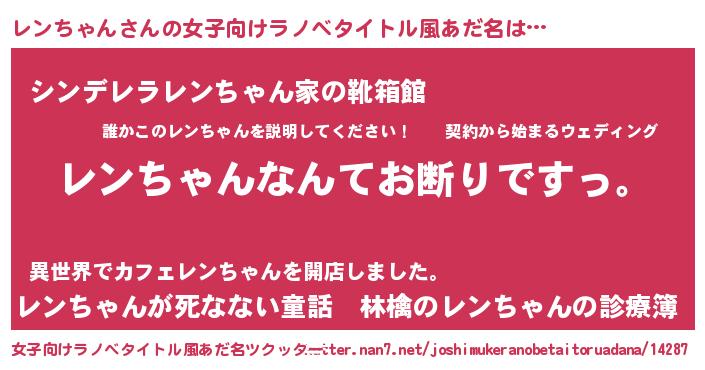 | ヘコむあだ名 | 『レンにゅー』『レンちゃん(苦笑)』 |