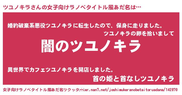 | 意味不明あだ名 | 『自称ツユノキラ』『永久保存ツユノキラ』 |