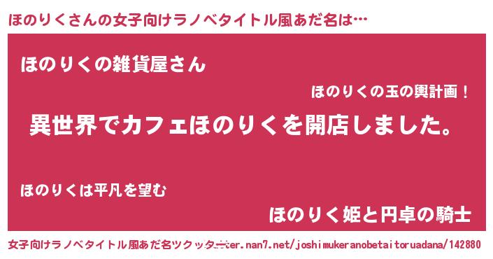| 男性向けラノベタイトル風あだ名 | 『誰もが恐れるあのほのりくが、ぼくの専属メイドになるようです。』 |