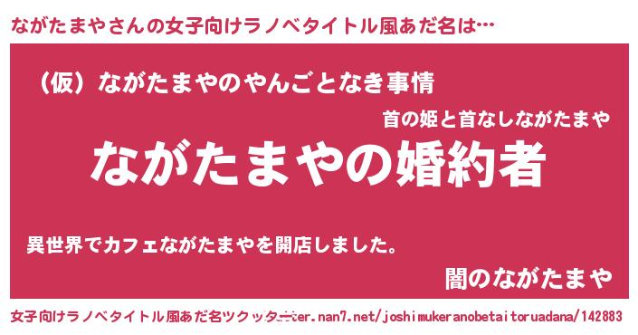 | 男性向けラノベタイトル風あだ名 | 『うちの娘の為ならば、俺はもしかしたらながたまやも倒せるかもしれない。』 |