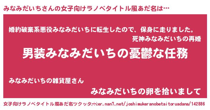 | 男性向けラノベタイトル風あだ名 | 『うちのみなみだいちが世界を掌握している!』 |