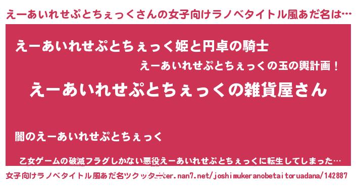 | 意味不明あだ名 | 『えーあいれせぷとちぇっくフォーエバー』 |
