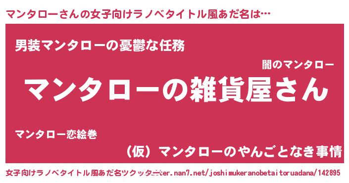 | 男性向けラノベタイトル風あだ名 | 『やはりマンタローの青春ラブコメはまちがっている 』 |