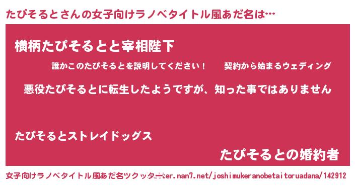 | 意味不明あだ名 | 『住所不定無職たぴそると(43歳)』 |