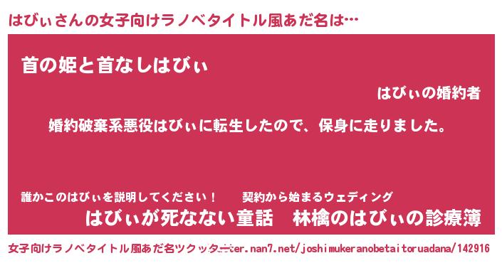 | 胡散臭い通販商品みたいなあだ名 | 『ハリウッド女優が絶賛した100年もののヴィンテージワイン…その名も「はびぃ」』 |